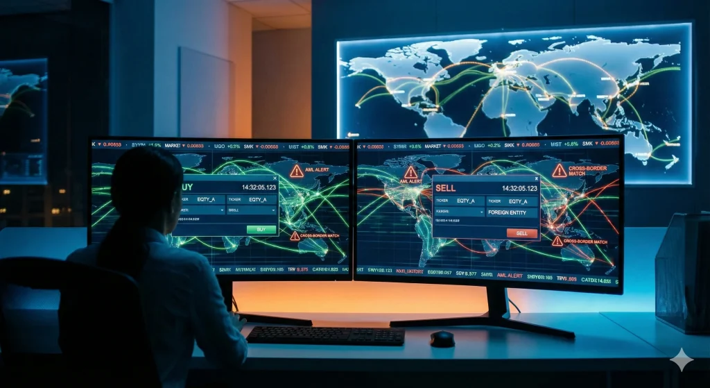 - Systems must support cross-desk and cross-jurisdiction data correlation: e.g., equity trades, FX flows, settlement instructions, and linked accounts.