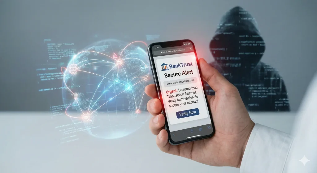 - Smishing (SMS phishing) delivering harmful links or fraudulent OTP requests.