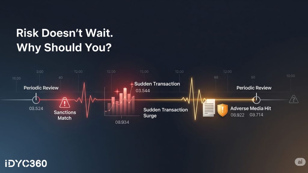 Sanctions lists are updated daily. And suspicious activity doesn’t wait for periodic reviews to get flagged.