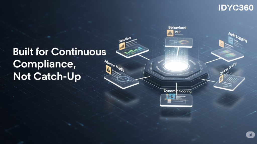 IDYC360 was built with continuous monitoring at its core. Our infrastructure supports always-on, risk-aware compliance across your entire customer base.