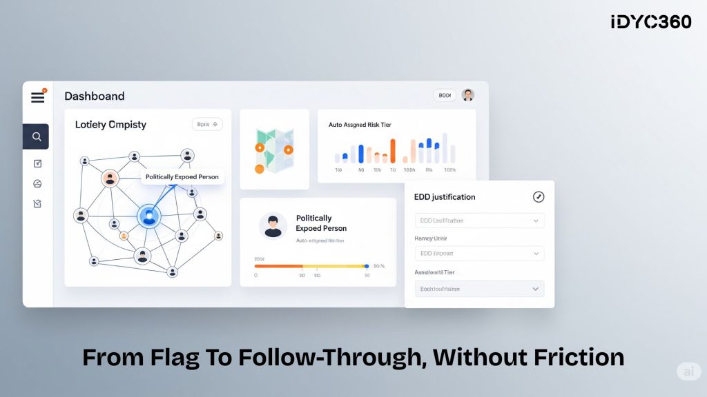 IDYC360 equips compliance teams with advanced tools to detect, monitor, and document PEP exposure, without overwhelming the system.