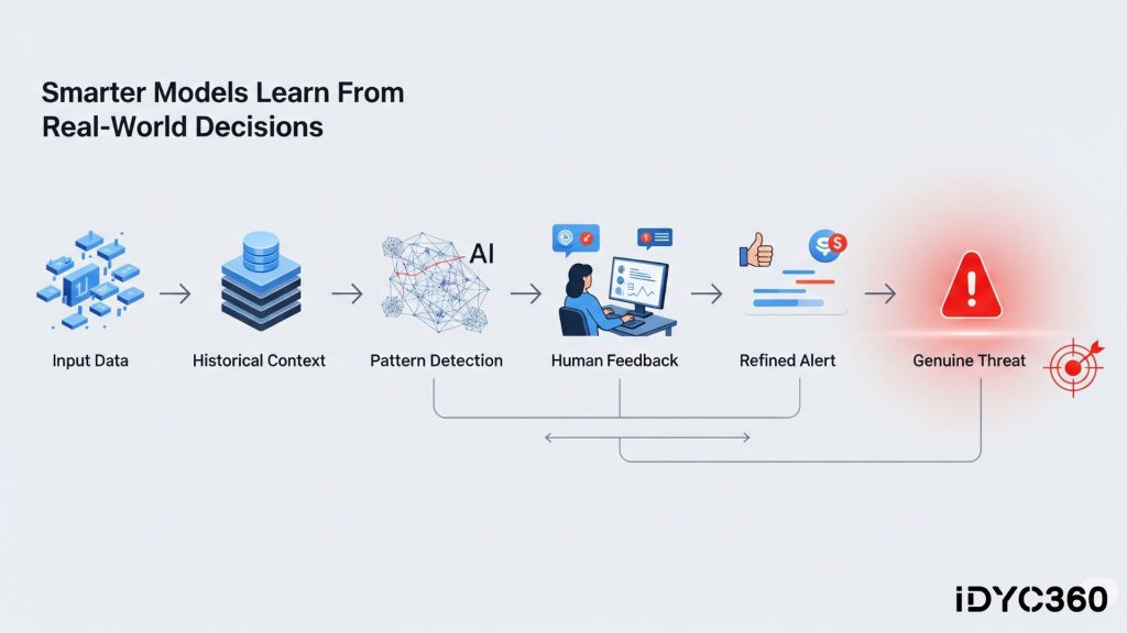 By analyzing historical alerts, resolved cases, user behavior, and transactional context, ML models can begin to recognize what a “true risk” looks like. And just as importantly, what a “false positive” looks like.